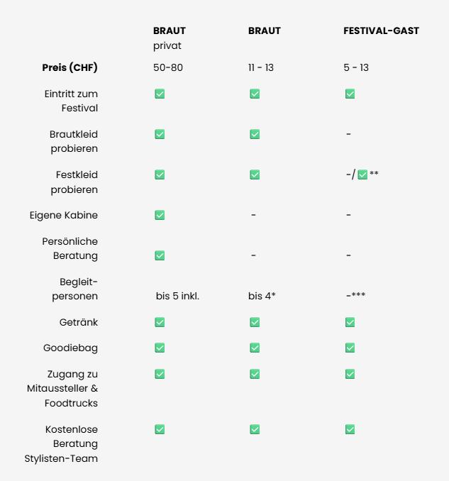 Zugang Braut: freier Eintritts-Slot zum Stöbern inkl. Getränkebon (CHF 8-11)